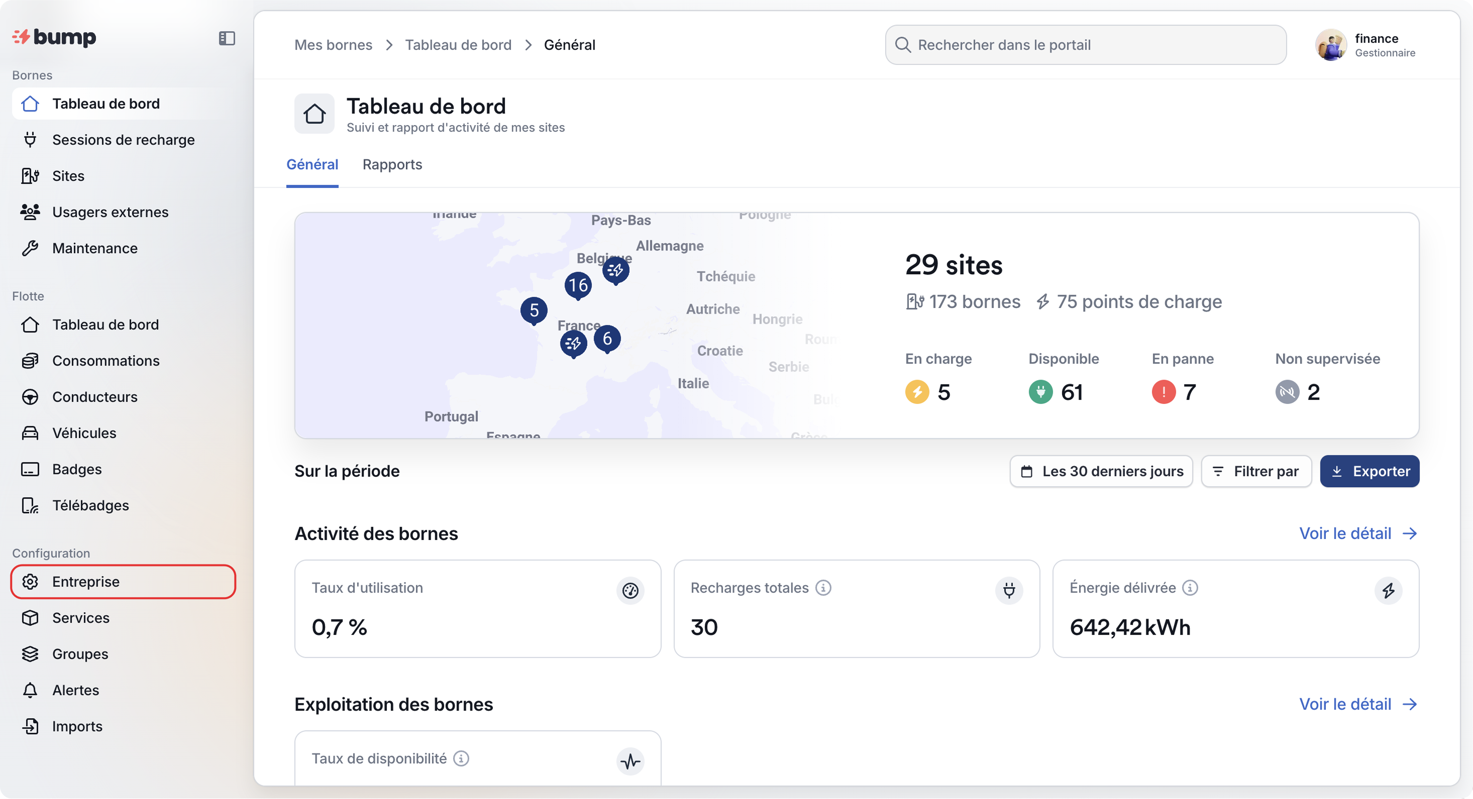 La configuration de votre portail Bump est une étape essentielle ! Une fois bien paramétré, vous pourrez facilement suivre l’activité de votre flotte et des bornes présentes sur votre site. ⚡️