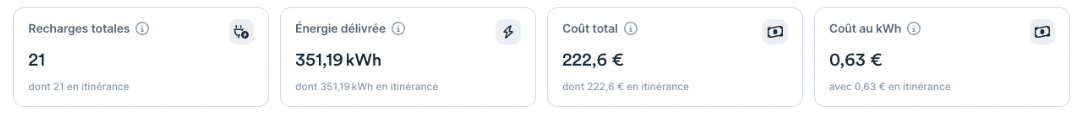 ⚡️ Quantité totale de kWh délivrés pour mes conducteurs et véhicules