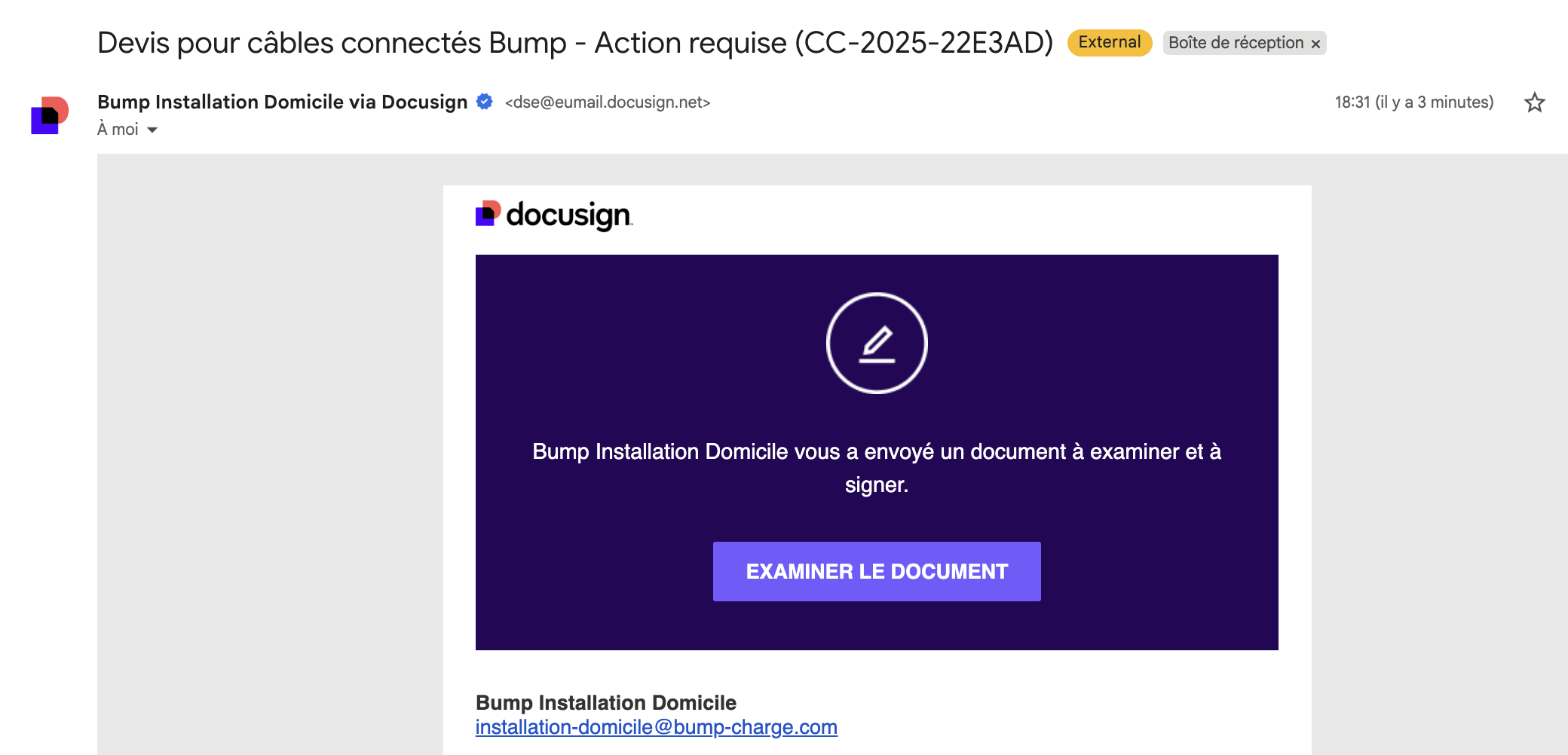 Email du signataire du devis (qui devra signet électroniquement via un mail DocuSign)