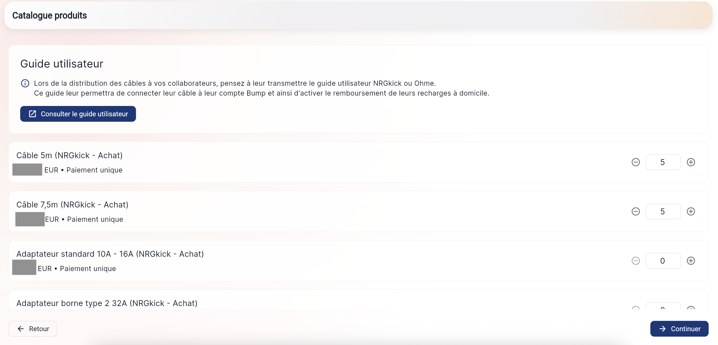 0 | Aller dans votre Portail Bump > Recharge à Domicile > Câbles connectés > Bouton" Commander des câbles" |