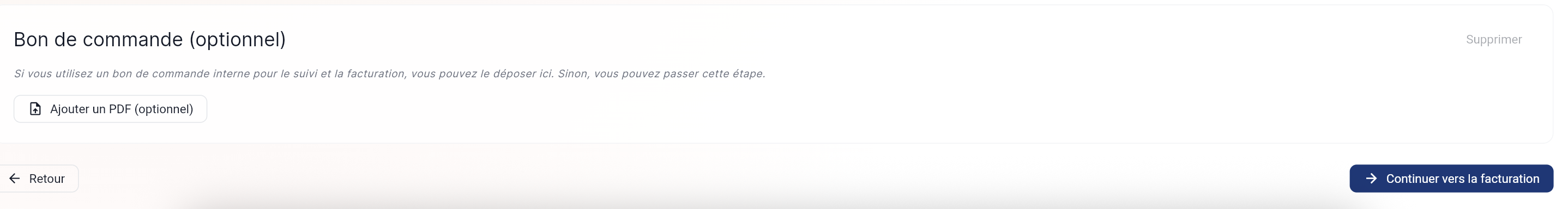Étape 3 — (Optionnel) Upload du bon de commande interne